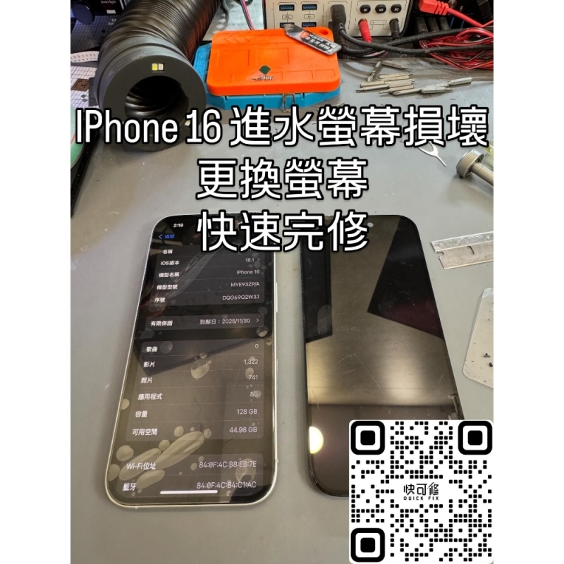 IPhone 16 進水 螢幕故障 不顯示 快速維修