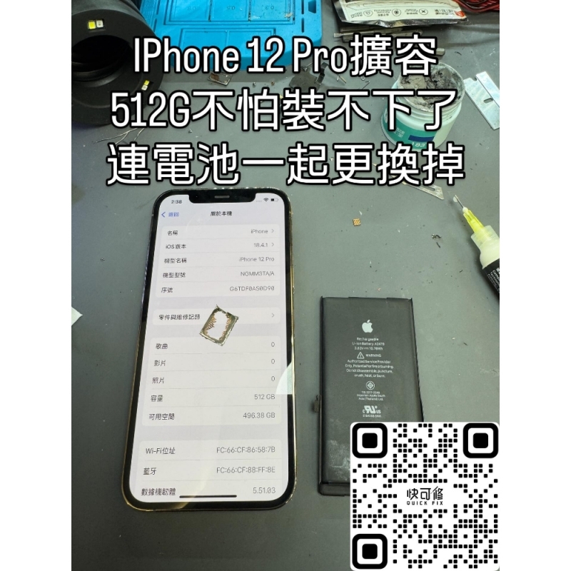 IPhone 12 Pro 客人說容量常常不夠用 擴容512G 使用打磨拆焊 安全又可靠